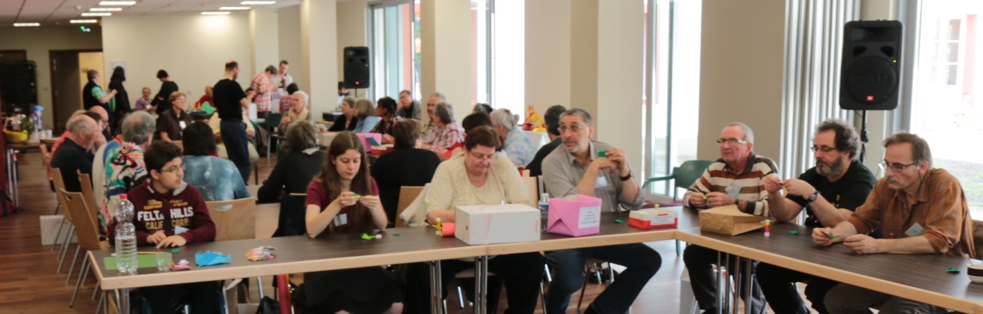 Les Rencontres de Mai 2014 ont eu lieu en Alsace, une superbe région française qui a beaucoup inspiré les plieurs de papier comme vous le verrez dans les expositions. Nous devons ces photos à Bruno Ferraretto, Étienne Cliquet et Jean-Claude Vanzut. Nous remercions encore l’association locale « Origami Alsace » conduite par Josiane Ferraretto qui nous a merveilleusement accueillis.