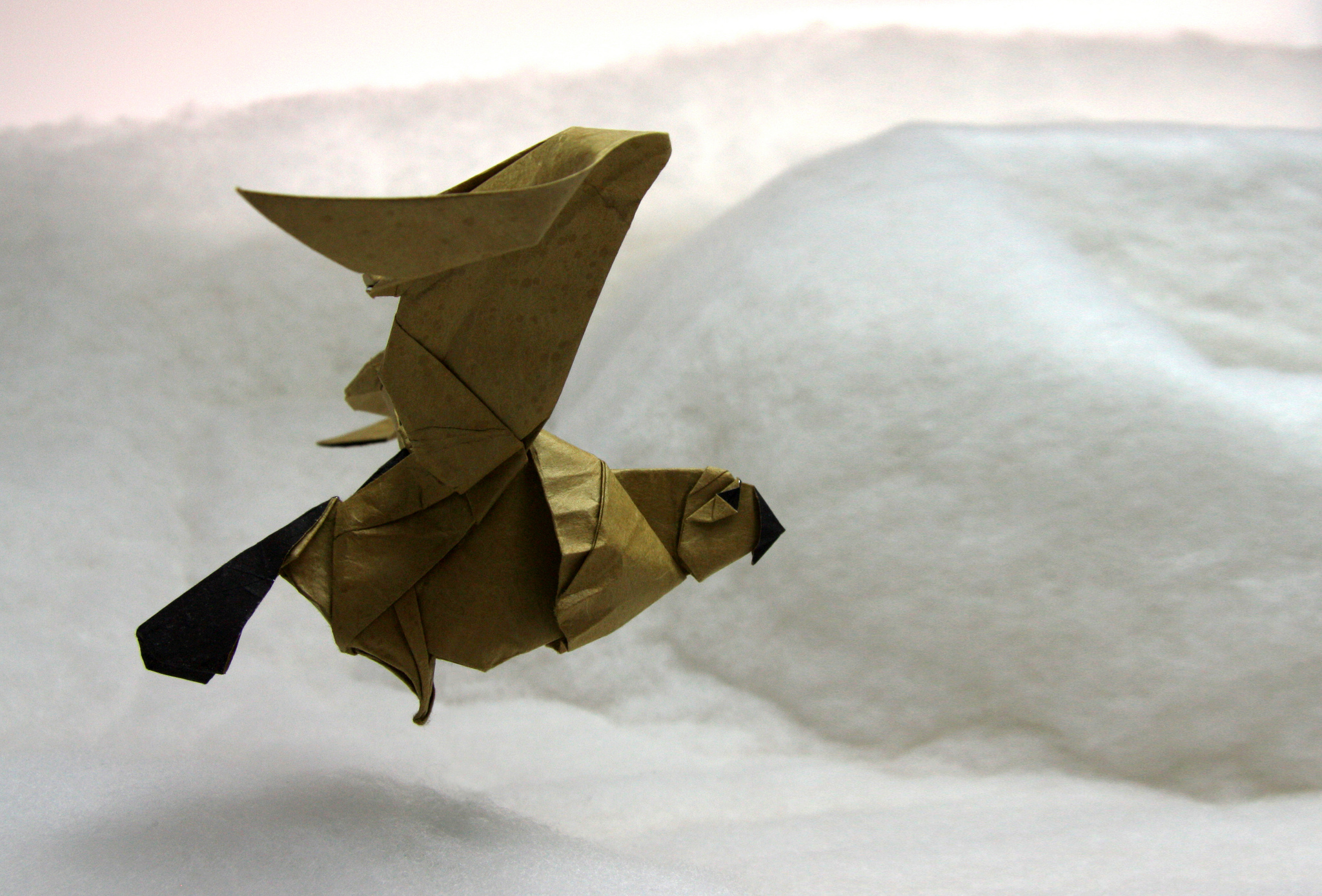 Since my earliest experiments with origami as a child, I’m still surprised by the extraordinary results obtainable from the simplest raw material. The folder has no need for any equipment, simply the paper and his hands. Indeed, the restrictions of the square of paper and the unwritten rules of origami (no cutting, gluing, or decoration) encourage the folder to overcome apparently impossible technical constraints.